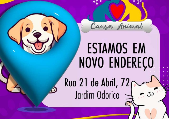 Para melhor atender os cidadãos a Causa Animal está atendendo em novo endereço. O novo espaço está localizado na Rua 21 de Abril, 72 – Jardim...