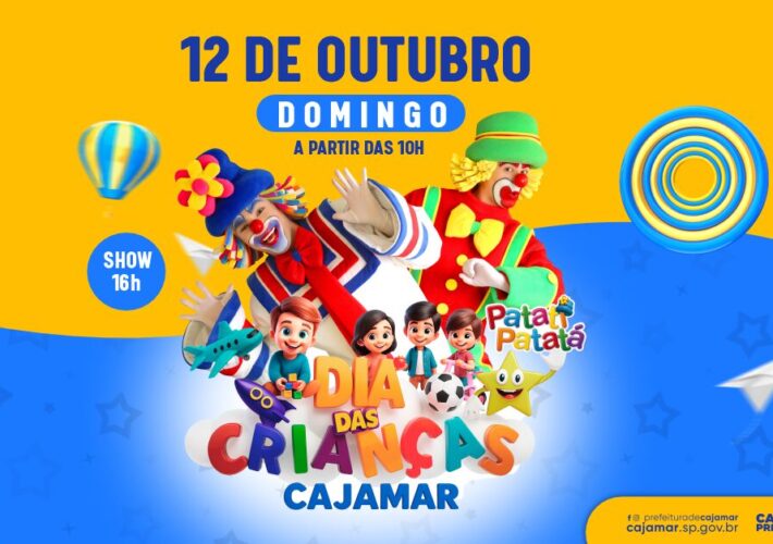 Evento contará com apresentações artísticas, brincadeiras, distribuição gratuita de alimentos e o show especial de Patati & Patatá A Prefeitura de Cajamar promoverá no próximo domingo,...