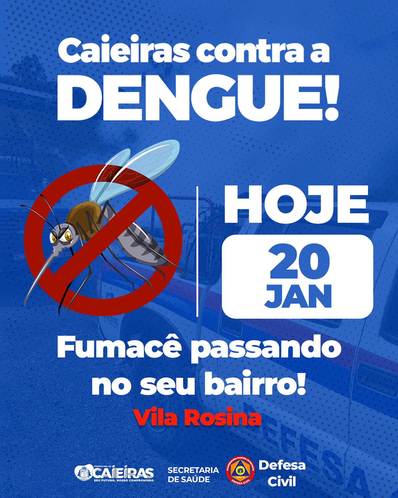 Hoje (20), o carro do fumacê estará no bairro para combater o mosquito Aedes aegypti. Para garantir que tudo aconteça de forma eficiente, abra as janelas e, se possível, as portas também.
