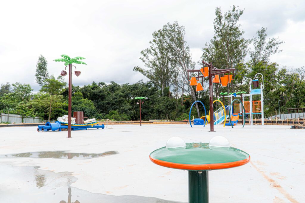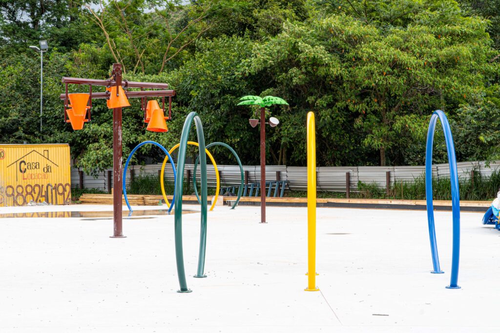 O parque contará com diversas atrações aquáticas interativas, como coqueiro aquático, mini balde suspenso, arco circular, esguicho margarida, esguicho sapinho e balde d’água, criando um ambiente lúdico, refrescante e cheio de movimento. Será um espaço onde as crianças poderão brincar com liberdade, em contato com a natureza e em um ambiente planejado para proporcionar experiências inesquecíveis.