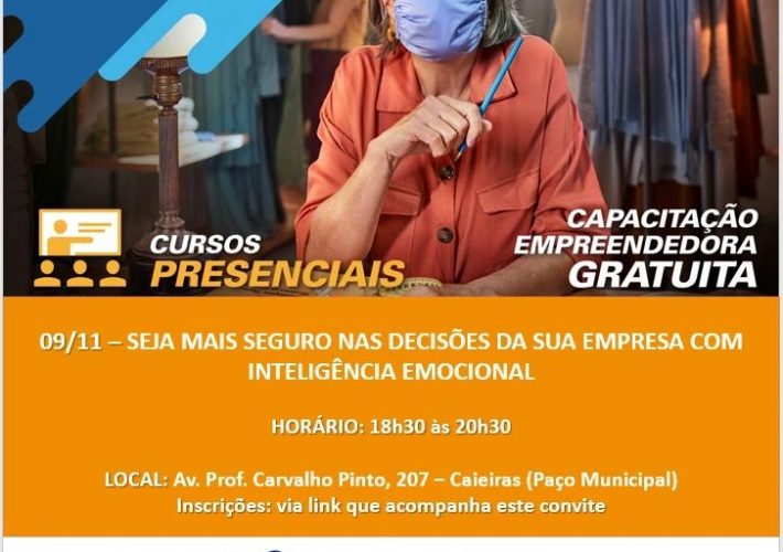 Empreendedor, que tal trabalhar sua inteligência emocional a favor dos seus negócios? Curso gratuito de capacitação empreendedora, dia 09/11, das 18h30 às 20h30, no Paço Municipal!...