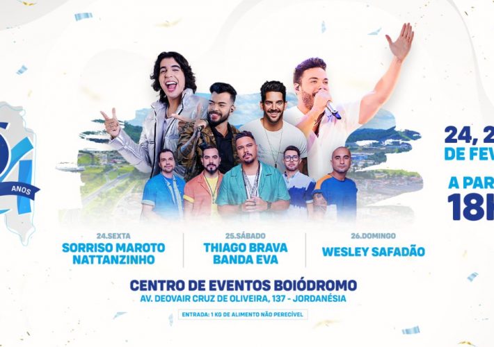 Festa de 64 de Cajamar terá shows de Sorriso Maroto, Nattanzinho, Thiago Brava, Banda Eva e Wesley Safadão