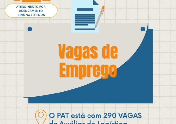 O Posto de Atendimento ao Trabalhador (PAT) de Francisco Morato está com 290 vagas de Auxiliar de Logística. O atendimento será feito mediante agendamento pelo link:http://pat.agendasp.sp.gov.br/eagenda.web/PAT…....