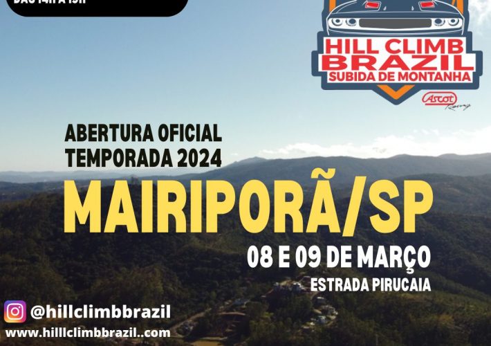 Mairiporã recebe na sexta-feira, 08 e no sábado, 09, o início da temporada 2024 do campeonato de automobilismo de subida de montanha, a Hill Climb Brazil....