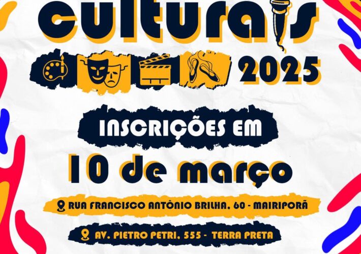 A Prefeitura de Mairiporã, por meio da Secretaria de Cultura, informa que as inscrições para as Oficinas Culturais 2025 terão início no dia 10 de março,...