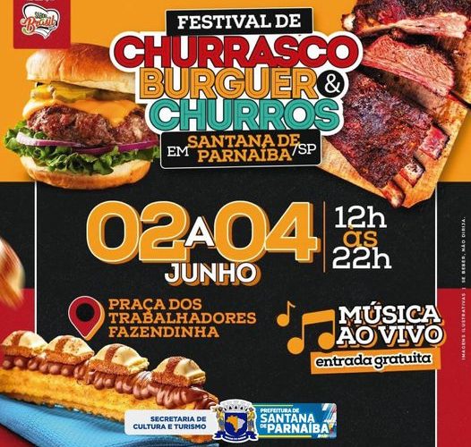 Com churrasco, chopp artesanal, hambúrguer artesanal, churros, área kids, shows e muito mais! Imperdível, não é? De 02 a 04 de junho das 12h às 22h....