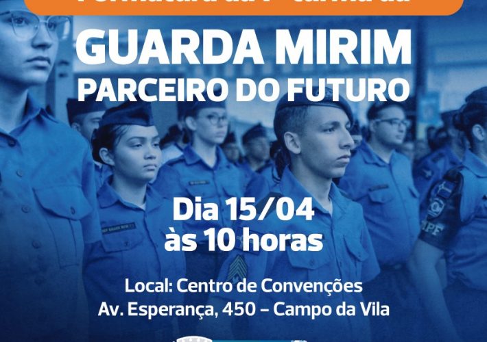Você é nosso convidado para a Formatura da 7ª Turma da Guarda Mirim Parceiro do Futuro, que acontecerá dia 15/04 às 10h. Dia: 15/04/2023 Horário: 10h00...