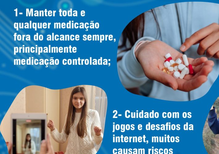 1-Manter toda e qualquer medicação fora do alcance sempre, principalmente medicação controlada; 2- Cuidado com os jogos e desafios da internet, muitos causam riscos gravíssimos; 3-...