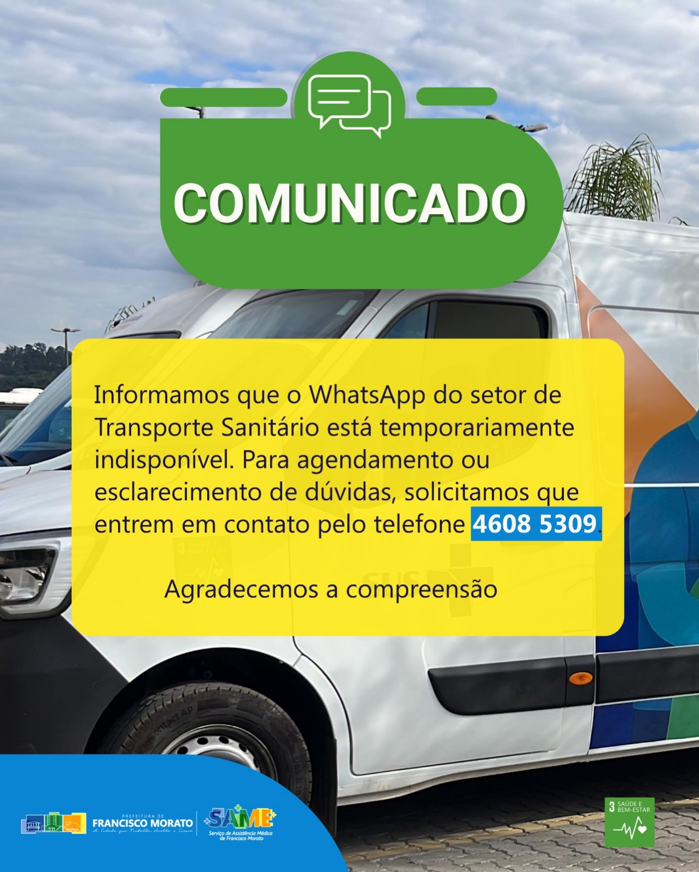 #TransporteSanitário#Saúde#ComunicadoOficial#FranciscoMorato