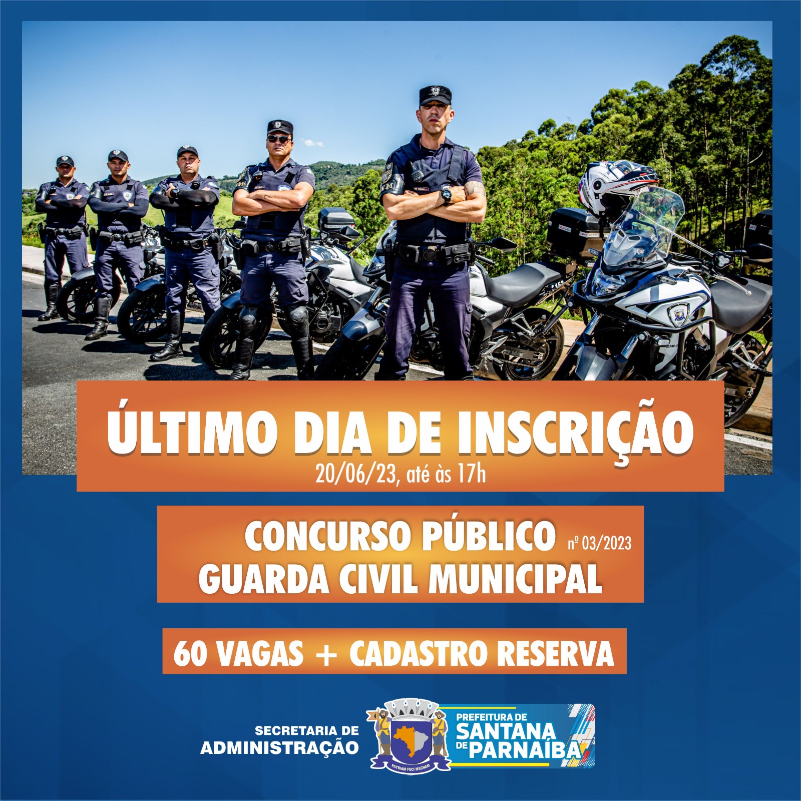 Hoje é o último dia para se inscrever para o concurso público da Guarda Civil Municipal, as inscrições devem ser efetuadas através do site até às 17h. https://www.institutomais.org.br/Concursos/Detalhe/472