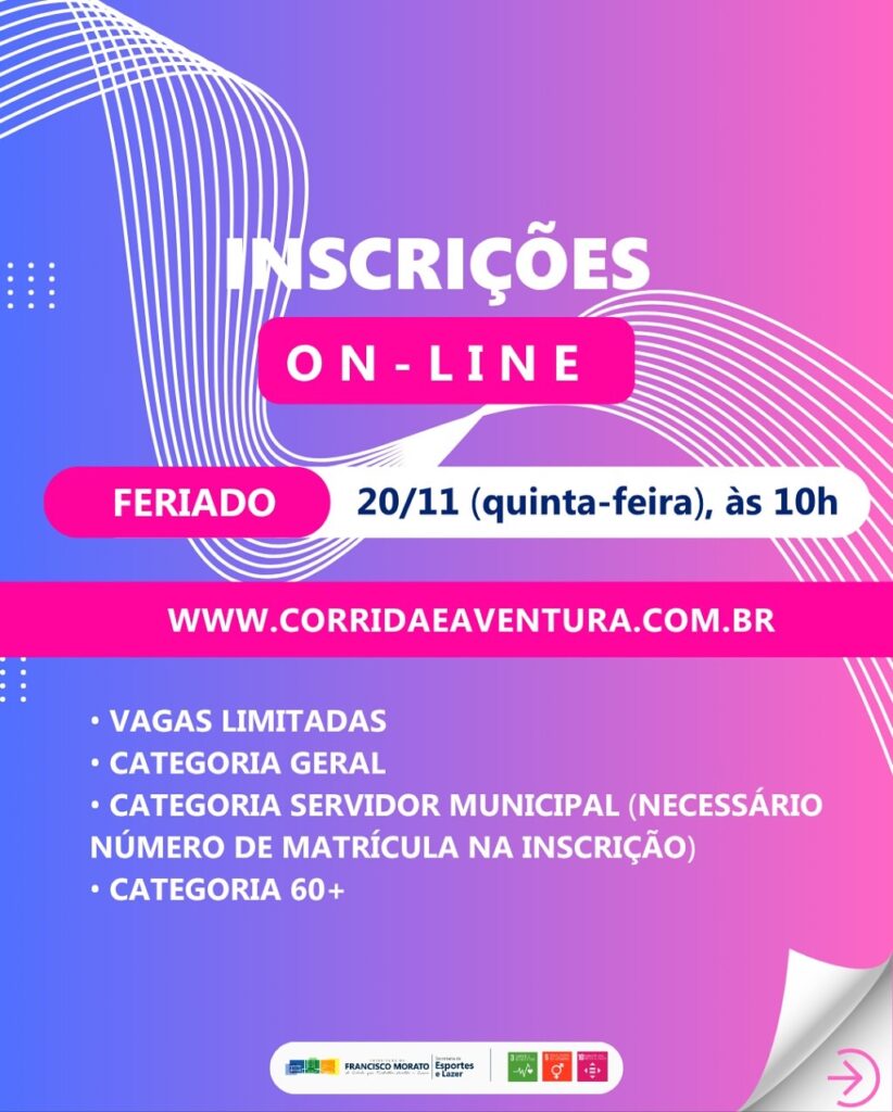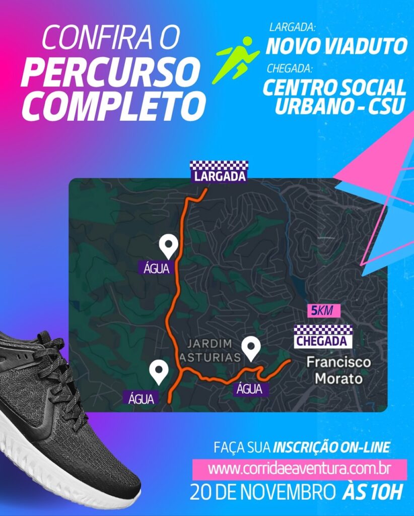 As inscrições abrem no feriado, dia 20/11, às 10h, no site: www.corridaeaventura.com.br