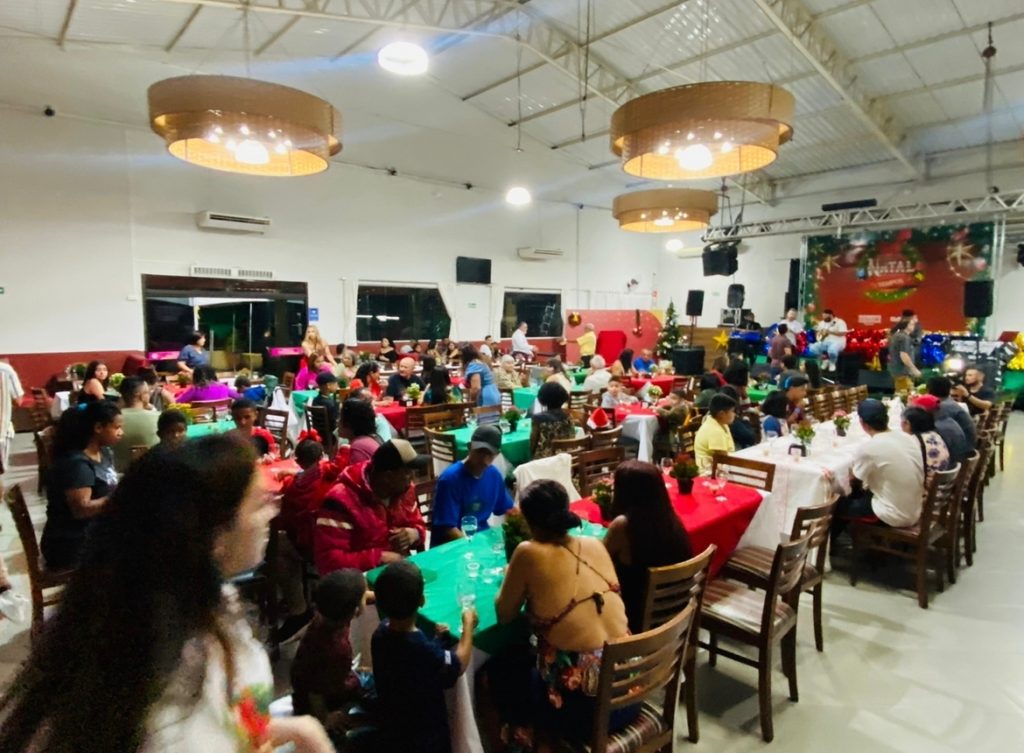 A grande ceia de Natal foi preparada no salão do Restaurante da Rosinha, e contou com a presença do prefeito Danilo Joan, sua esposa e presidente do Fundo Social de Solidariedade Nadja Haddad, a equipe do Fundo Social e cerca de 200 famílias que recebem auxílio ao longo do ano.