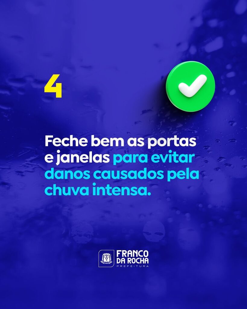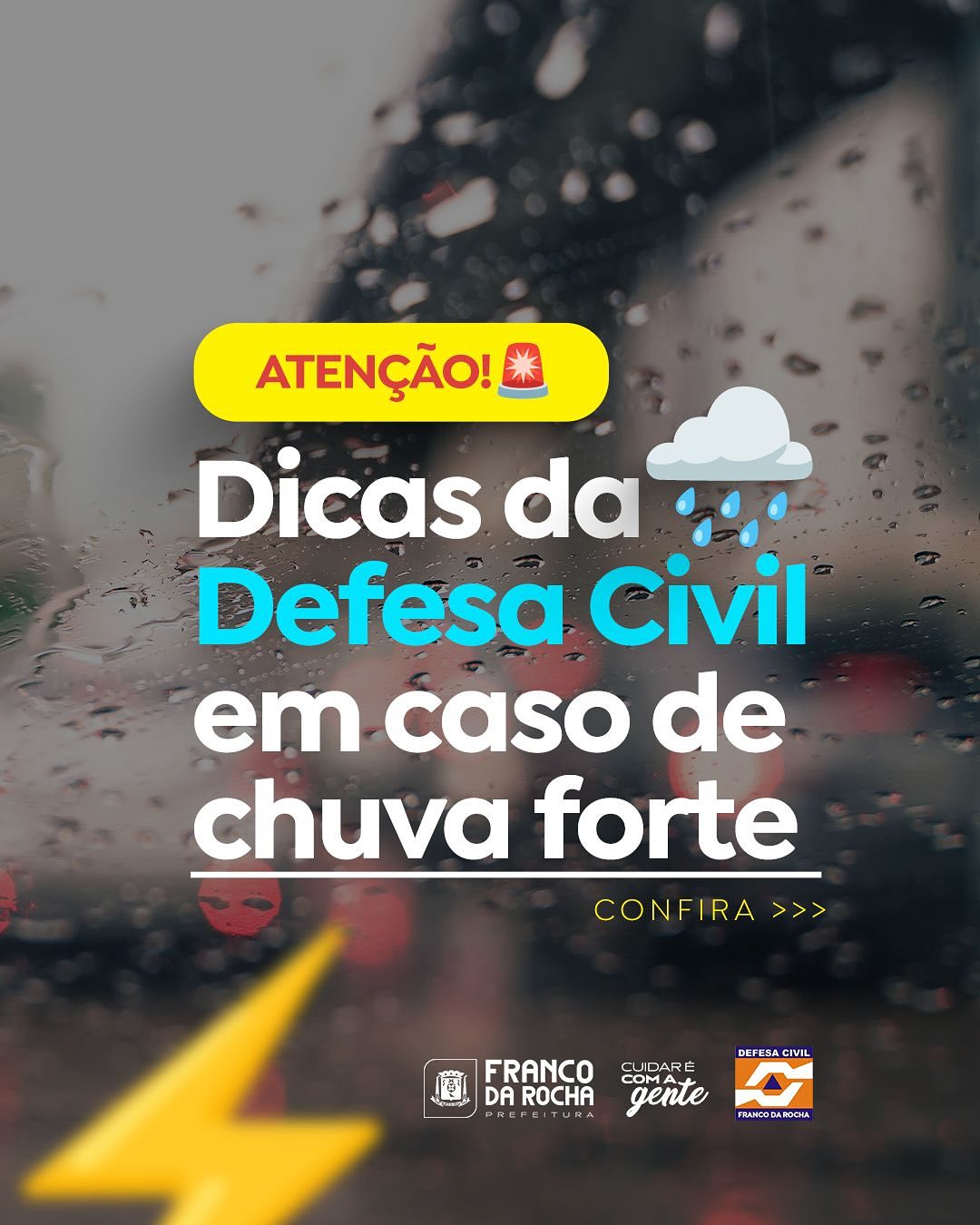 A Defesa Civil preparou dicas importantes para você se proteger em dias de chuva forte. Arraste para o lado e confira como manter sua segurança e a de sua família!