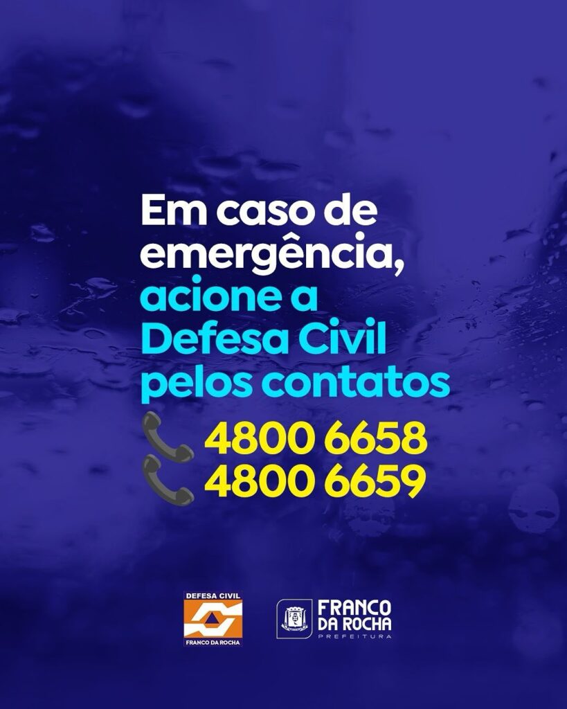 Fique atento a possíveis sinais de risco. Em caso de necessidade, acione a Defesa Civil pelos números: 4800-6658 / 4800-6659.