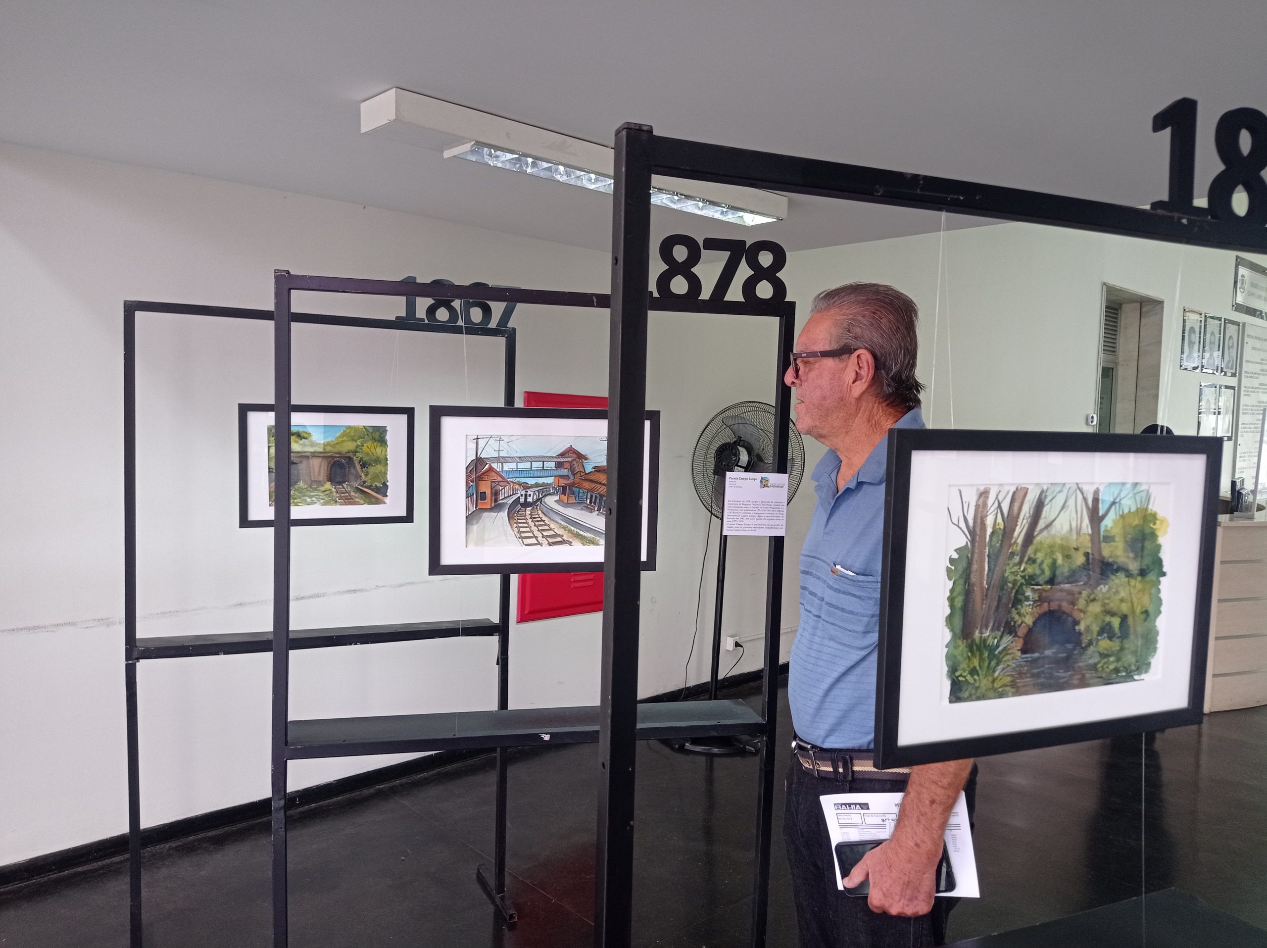O artista Paulo du’Sanctus é o responsável pela curadoria da exposição e o autor das obras. Por meio de pinturas com a técnica aquarela, ele mergulha numa viagem ao tempo, retratando memórias desde 1867 até 1988, com obras baseadas na Praça Castello Branco, Metalúrgica Krupp, Monumento ao Trabalhador, o Cine Teatro, entre outras. “Nossa cidade tem uma longa história que deve ser revivida e descoberta por quem ainda não conhece. Aqui, além de prestigiar as imagens, vai conhecer também histórias interessantes que encantam”, afirma o artista, ressaltando que a exposição só foi possível graças à Lei de Incentivo Paulo Gustavo, à qual o município aderiu com o apoio do Governo do Estado de São Paulo.Valter Gimenez, de 71 anos, é morador do bairro Monte Alegre desde 1981. Prestigiando a exposição “Patrimônios”, ele diz que faz uma viagem no tempo, revivendo as imagens do passado, principalmente quando viu a obra do Cine Teatro. “É emocionante ver através da arte um local que tanto me traz boas recordações. Lembro da formatura do meu filho no Cine Teatro”, afirma o visitante, ressaltando a importância de, além de enxergar o futuro, reviver um pouco do passado também.