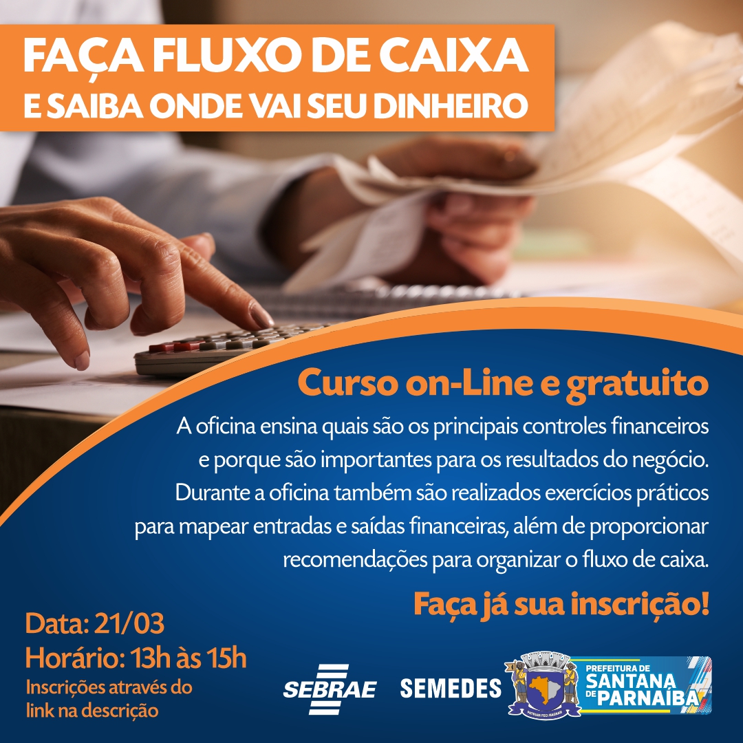 A Prefeitura, por meio da Secretaria de Emprego, Desenvolvimento Econômico, Ciência, Tecnologia e Inovação (SEMEDES), em parceria com SEBRAE-SP promovem: Oficina Faça Fluxo de Caixa Introdução: A oficina ensina quais são os principais controles financeiros e porque são importantes para os resultados do negócio. Durante a oficina também são realizados exercícios práticos para mapear entradas e saídas financeiras, além de proporcionar recomendações para organizar o fluxo de caixa.
