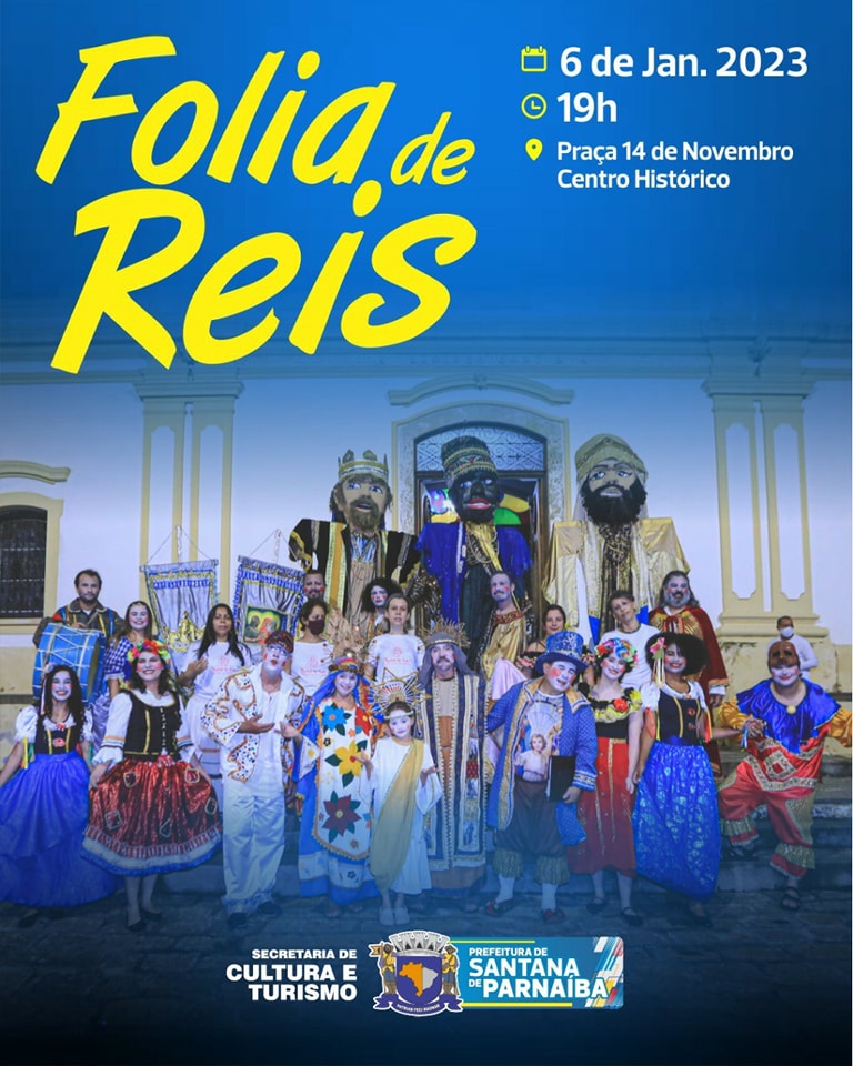 Para marcar o encerramento das festas natalinas, Santana de Parnaíba irá realizar a tradicional festa de Folia de Reis, nesta sexta-feira, 06/01, a partir das 19h na Praça 14 de Novembro, no Centro Histórico.