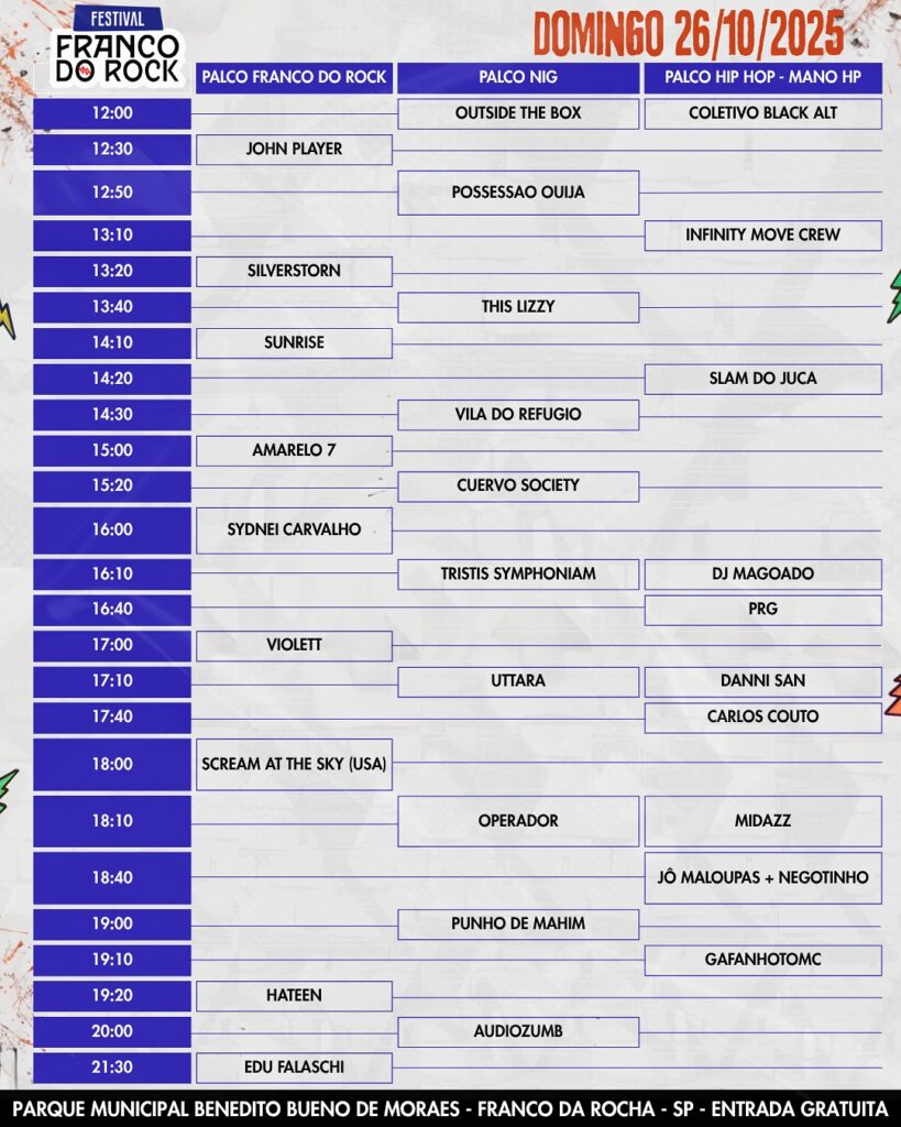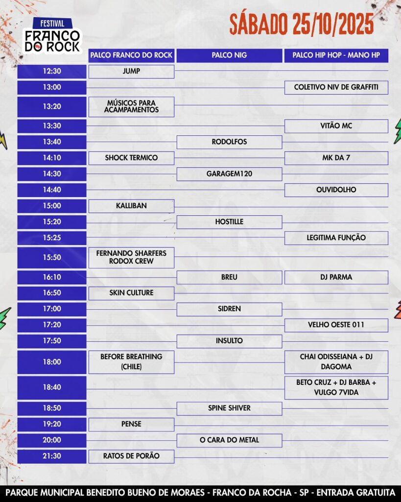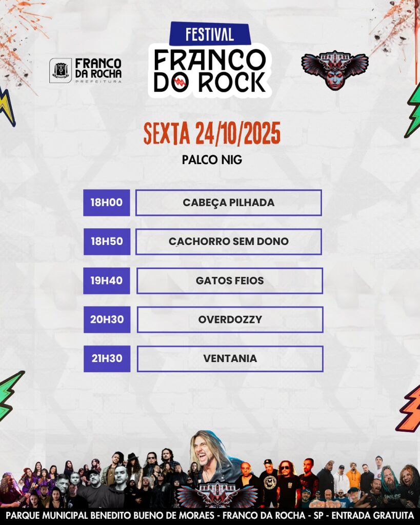 O Festival Franco do Rock é uma realização da Prefeitura de Franco da Rocha, com