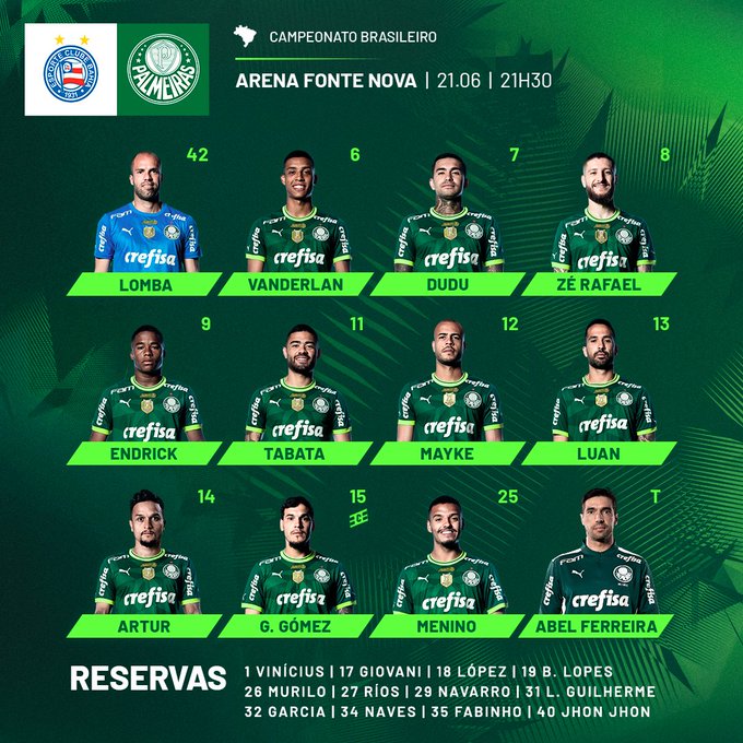 Bahia x Palmeiras ao vivo se enfrentam nesta quarta-feira (21), na Arena Fonte Nova, às 21h30 (de Brasília), pelo Campeonato Brasileiro. O confronto é válido pela 11ª rodada da competição.