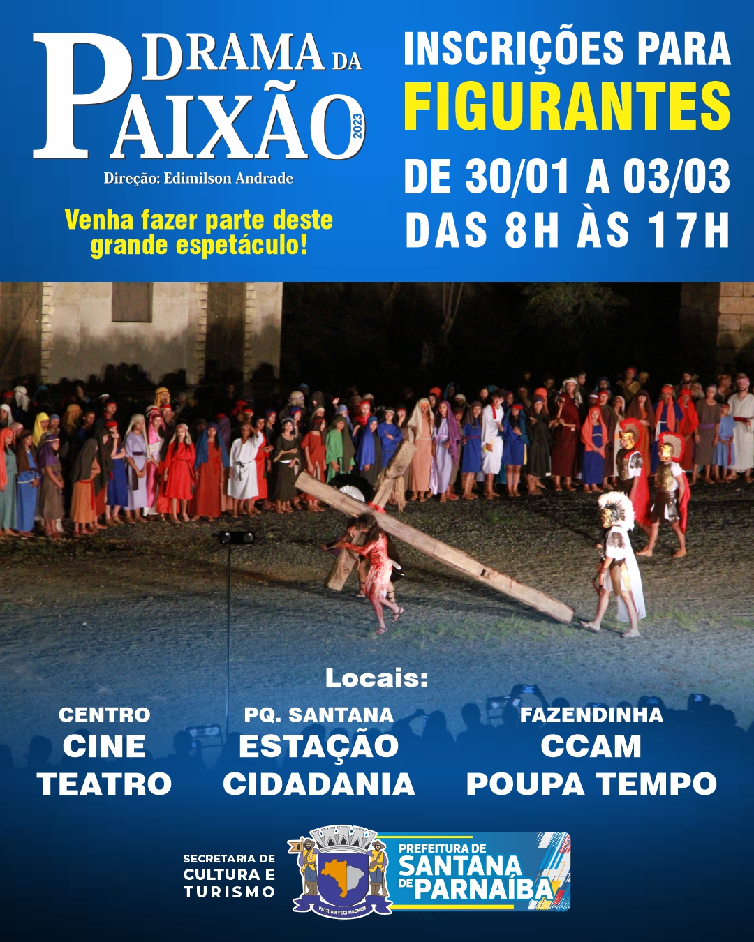 A Secretaria de Cultura e Turismo informa, continua as inscrições aos interessados em compor o corpo de figuração do espetáculo Drama da Paixão 2023.