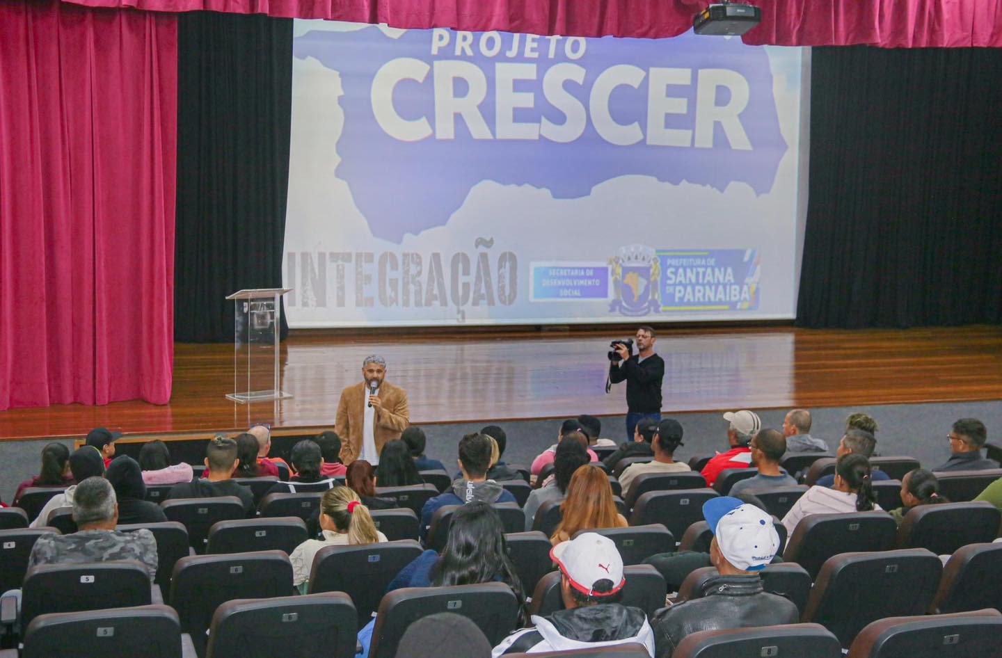 Ocorreu hoje na Arena de Eventos, a integração de aproximadamente 150 novos participantes do Projeto Crescer. Esse programa tem como objetivo auxiliar na recolocação dessas pessoas no mercado de trabalho, proporcionando qualificação profissional e desenvolvimento social.