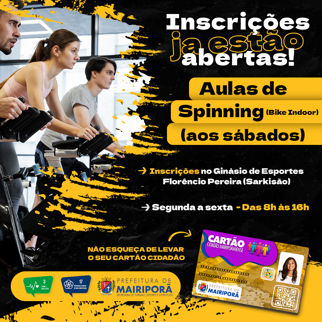 Estão abertas as matrículas para AULAS DE SPINNING, que vão acontecer todo sábado na Academia 7K Fitness, em uma parceria da Prefeitura de Mairiporã através da Secretaria de Turismo, Esporte e Juventude, com a academia. ). ![]()