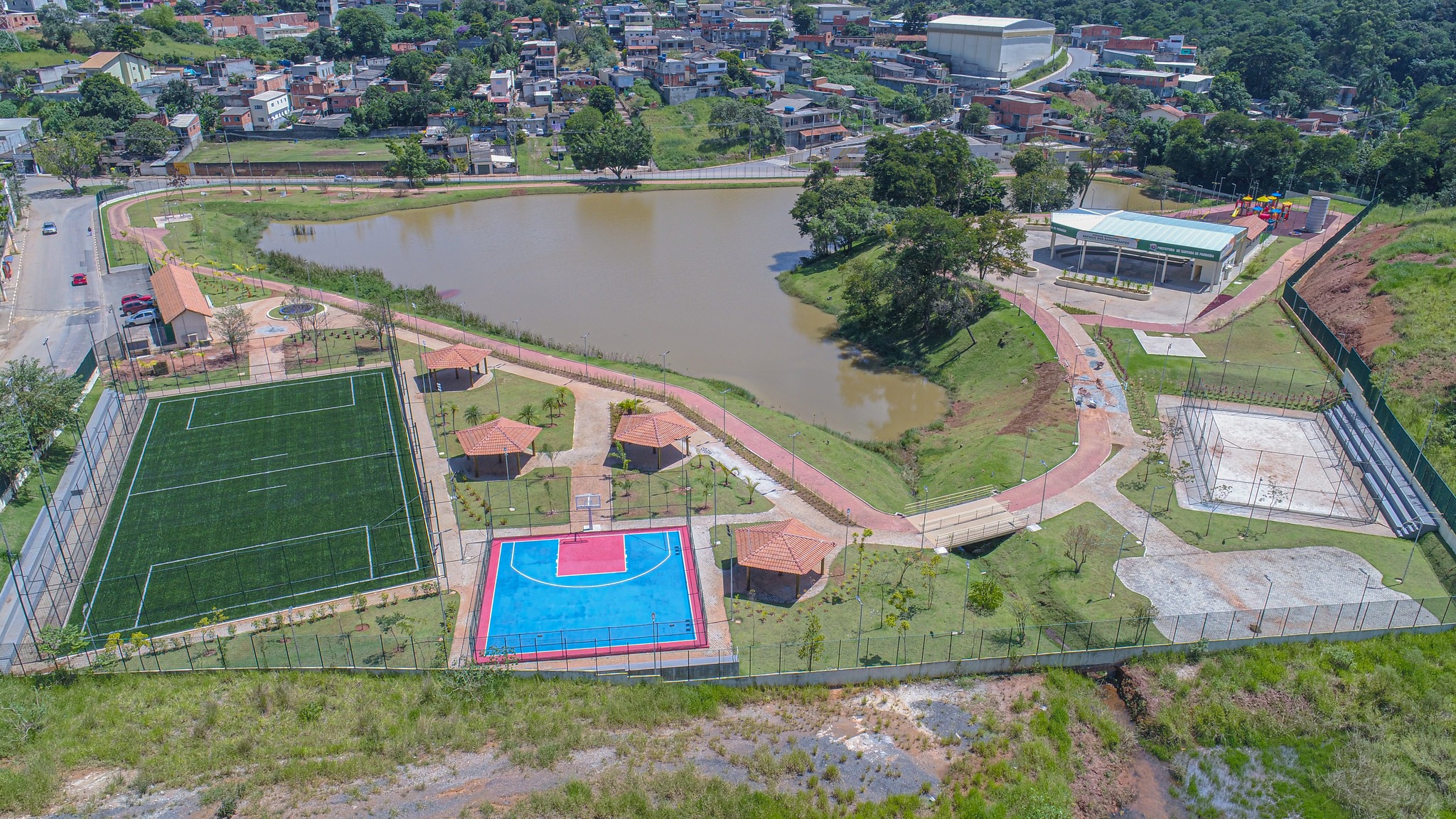 O parque contará com uma infraestrutura ampla e completa, com lago natural, pista de caminhada, quadras para realização de atividades esportivas, além de espaço para lazer e recreação, proporcionando saúde e qualidade de vida para a população da região.