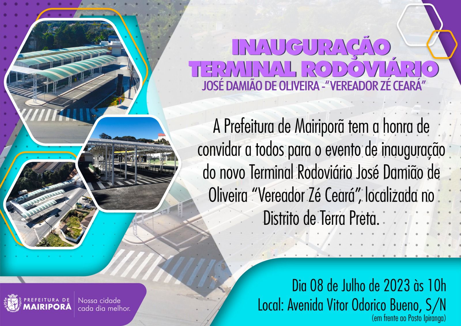 No sábado, 08, ás 10h, a Prefeitura de Mairiporã, irá inaugurar o Terminal Rodoviário José Damião de Oliveira – “Vereador Zé Ceará”, em Terra Preta.