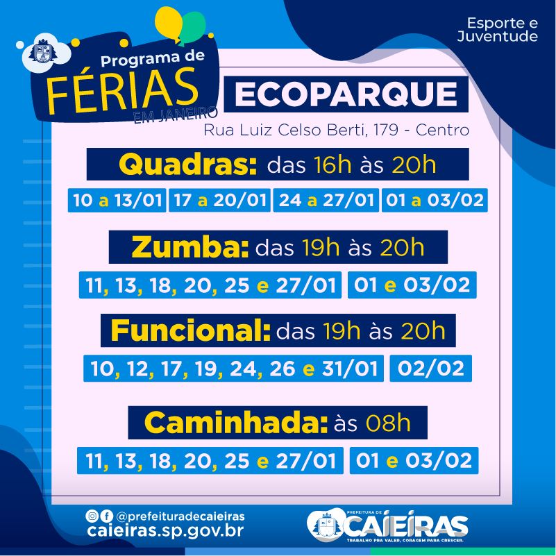 Venha aproveitar o período de férias e se divirta com toda a família na programação de esportes!