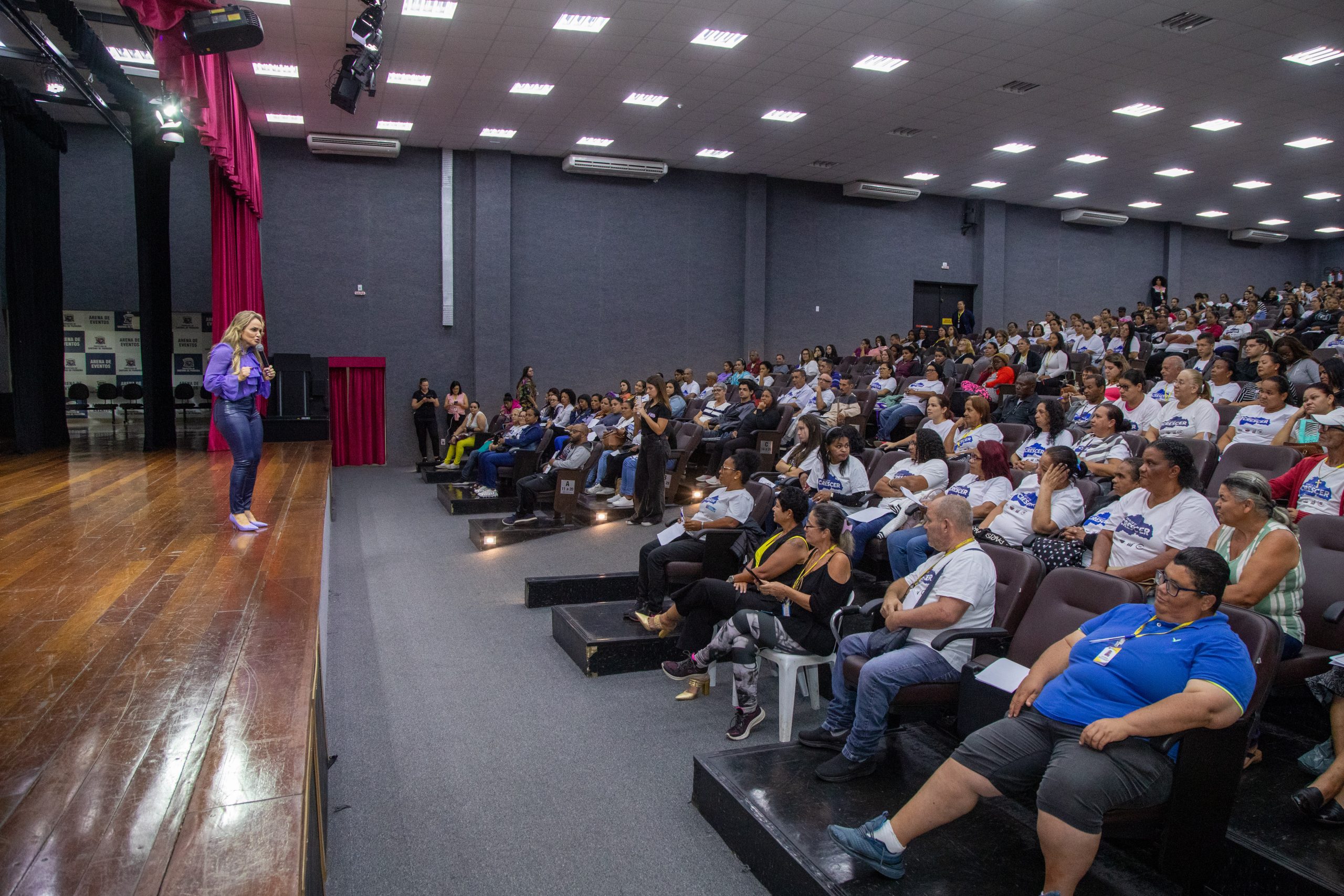 A Prefeitura de Santana de Parnaíba promoveu na manhã desta sexta-feira, 16/2, a palestra “O ano novo sou eu”, que marcou o início das atividades do Projeto Crescer em 2024. O evento ministrado pela secretária da Secretaria da Mulher e da Família, Selma Cezar, contou com mais de 500 bolsistas, que lotaram a Arena de Eventos, localizada na Av. Esperança – Campo da Vila.
