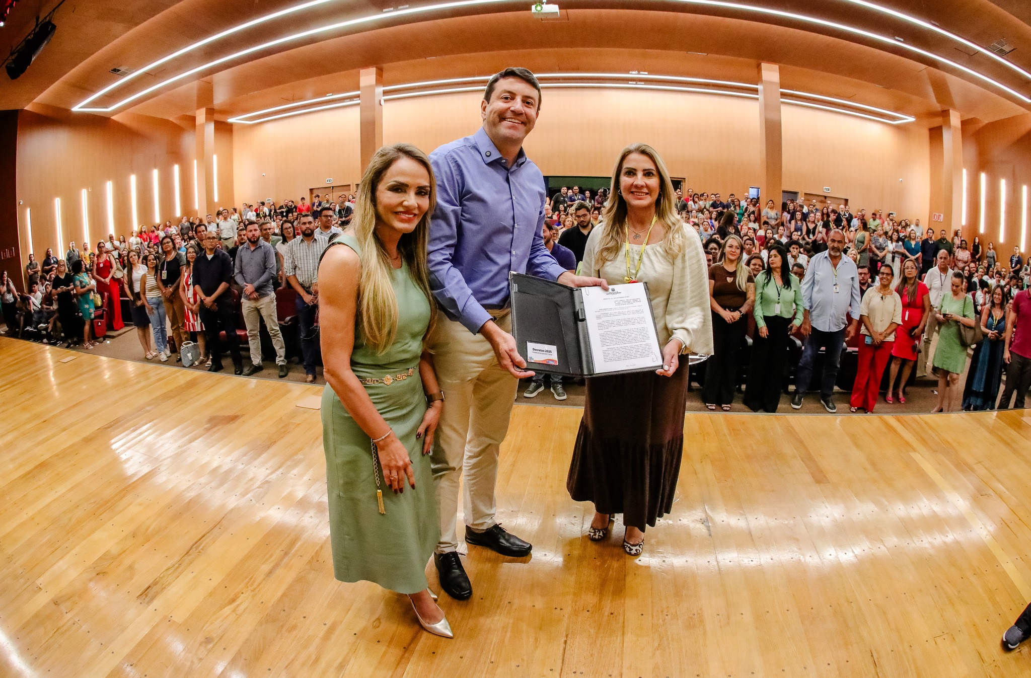 Durante o evento, também recebemos os alunos da rede municipal de ensino que conquistaram bolsas de estudos e irão ingressar em universidades públicas e privadas, incluindo a USP, demonstrando o compromisso de Santana de Parnaíba com a educação e o futuro dos jovens.