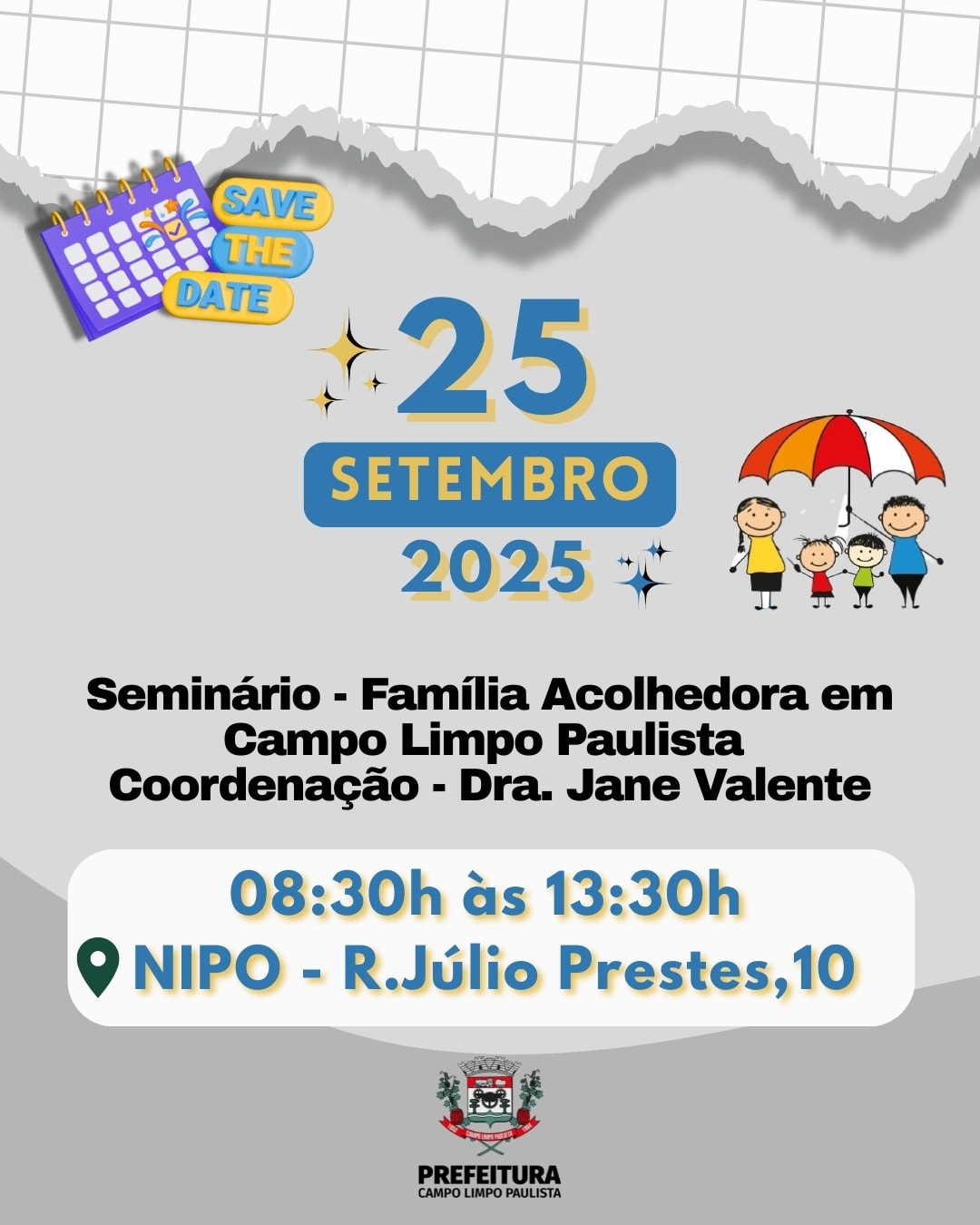 O objetivo do evento é sensibilizar e mobilizar a sociedade para a implantação do Serviço de Acolhimento em Campo Limpo Paulista, em conformidade com a legislação vigente e orientações do CNJ e CNMP.