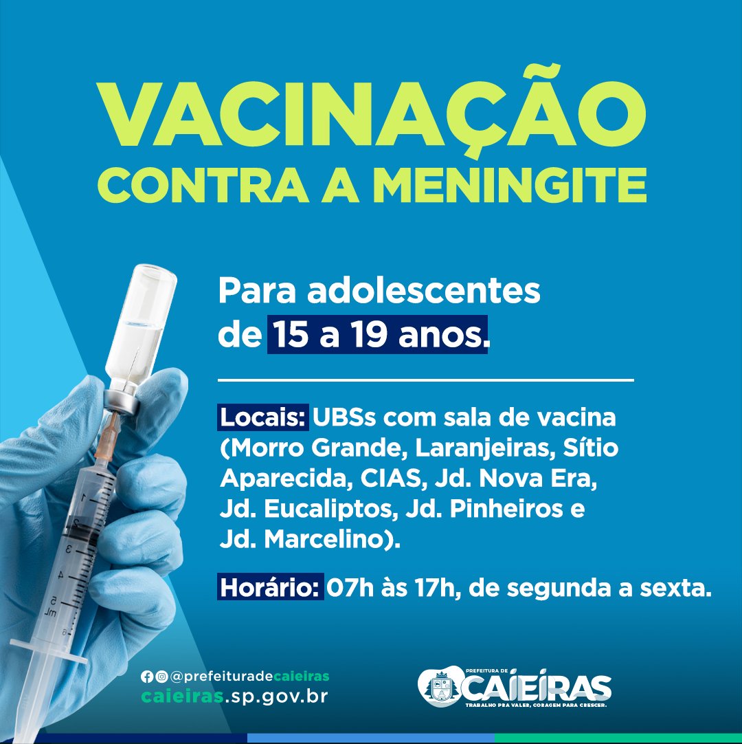 Vacinação contra meningite para adolescentes de 15 a 19 anos e profissionais da saúde